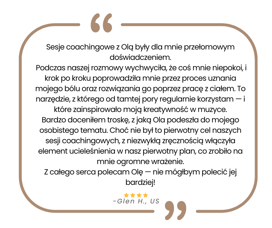 Czasami najtrudniejsz膮 cz臋艣ci膮 wprowadzania zmian jest wiedzie膰, od czego zacz膮膰. Mo偶esz czu膰 si臋 zablokowana, przyt艂oczona lub niepewna swojego nast臋pnego kroku. W Soul-to-Soul Coaching 艂膮cz臋 spersonalizowane techniki Jogi Nidry i Soul Purpose Coaching, aby Ci pom贸c: